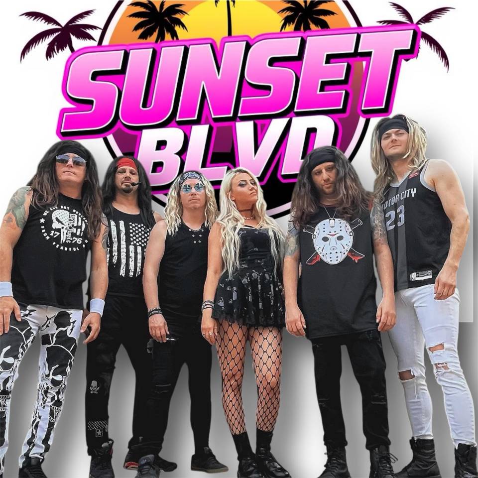 Hailing from Detroit Rock City, Sunset BLVD delivers an arena style show, equipped with an LED video wall, state-of-the-art sound and lighting and wardrobe straight out of your favorite hair band's closet! With both a male & female lead vocalist, there is no territory from the 80's left untouched - from Motley Crue, Poison, Bon Jovi & GNR, to Michael Jackson, Heart & Joan Jett, this band delivers the best of the Good-Time Era!!!