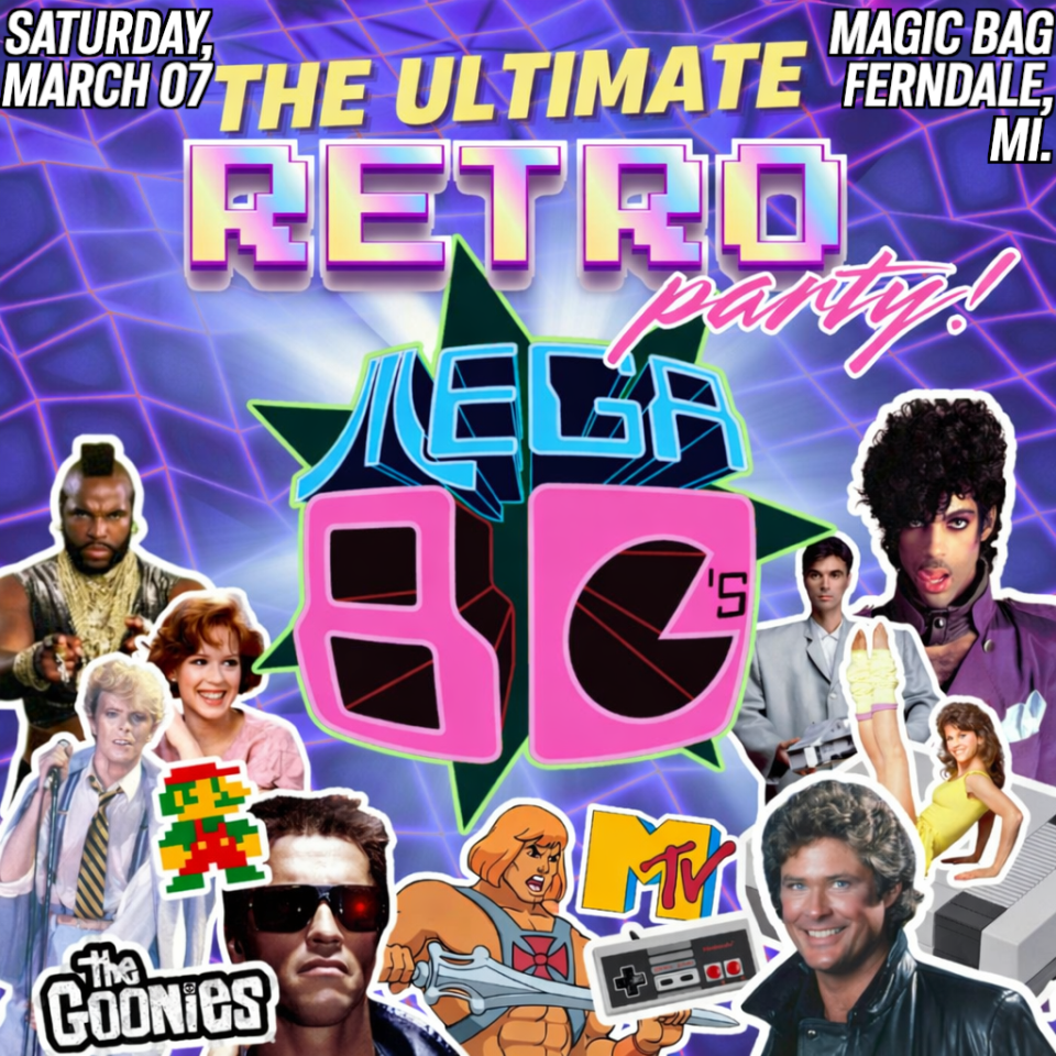 Take a handful of your favorite 80's songs, a splash of some retro fashion, a pinch of panache and an eye-popping video spectacle in the background and what do you get? The Mega 80's, of course! Since their emergence onto the Detroit music scene, the Mega 80's have taken southeast Michigan by storm. Now veterans of the 80's cultural milieu, they're still rocking as hard as ever. The proof is in the pudding! The band brings back all the fads, fashions and music of the 80's in one killer live performance. The Mega 80's were voted "The Best Cover Band In The City" by the readers of the Metro Times in 2025. They've also won the "Best Cover Band" category in Real Detroit Weekly for 13 consecutive years. The Mega 80's truly are the ultimate retro party!